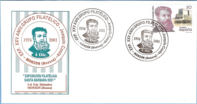 2001 del 3 al 8 de diciembre | Exposición Filatélica Santa Bárbara 2001. 25 años del Grupo Filatélico Joaquín Costa.